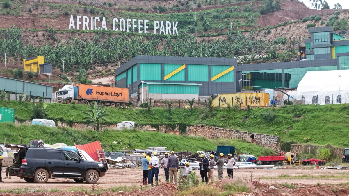 Location: Inside Africa Coffee Park, Rwashameire — overlooking the processing facility and coffee terraces